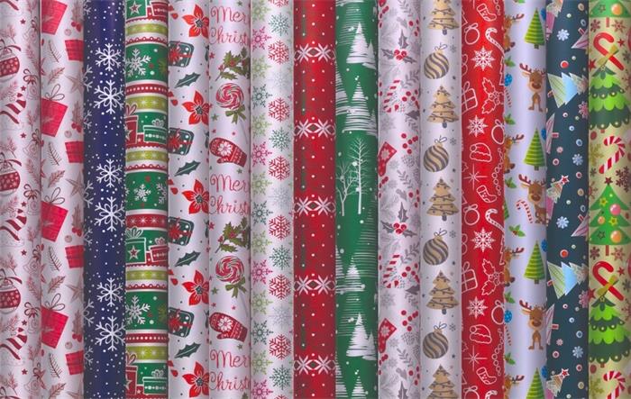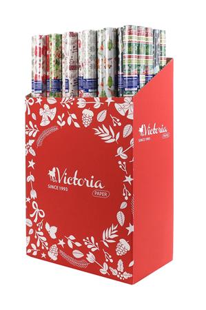 Csomagolópapír, íves, 70x200 cm, 60 tekercs, vegyes karácsonyi minták, VICTORIA PAPER