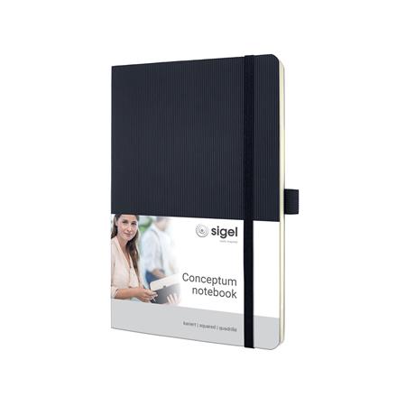 Jegyzetfüzet, exkluzív, A5, kockás, 97 lap, puhafedeles, SIGEL "Conceptum", fekete