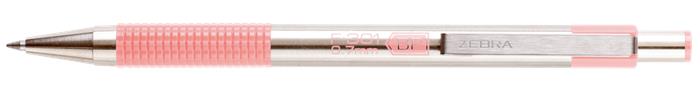 Golyóstoll, 0,24 mm, nyomógombos, rozsdamentes acél, pasztell rózsaszín tolltest, ZEBRA "F-301", kék