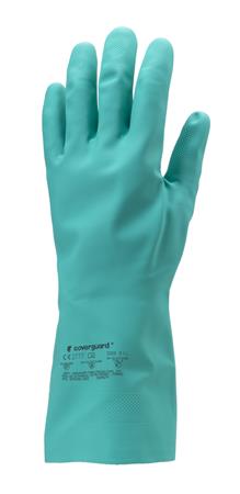 Védőkesztyű, nitril, vegyszerálló, érdesített, kesztyű, 9/L méret, zöld